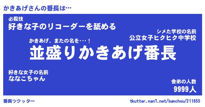 | 肩書あだ名 | 『かきあげ社長』『かきあげ総理大臣』 |