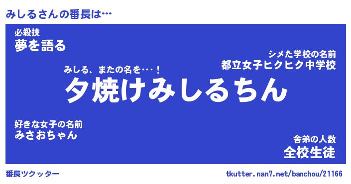 | ヘコむあだ名 | 『みしもー』『豆乳』『みし太郎』 |