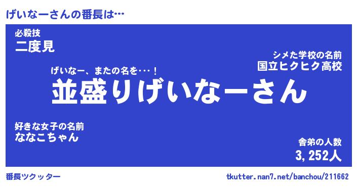 | 欧米人風あだ名 | 『マイケルげいなー』『ウサインげいなー』 |