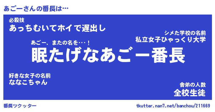 | ファンタジー風あだ名 | 『アゴフェル』『エターナルアゴーー』 |