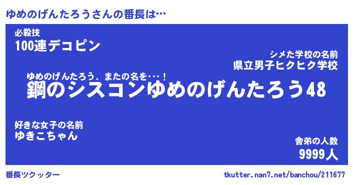 | ヘコむあだ名 | 『ゆめにー』『なまこ酢』 |