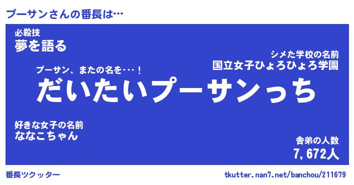 | 意味不明あだ名 | 『ペロリンプーサン』『永久保存プーサン』 |