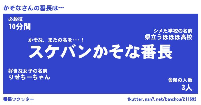 | ヒーロー風カッコイイあだ名 | 『スーパーカソナ』『ウルトラかそなマン』 |