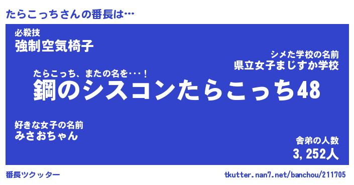 | ヘコむあだ名 | 『たらにー』『豆乳』『たらぷりん』 |