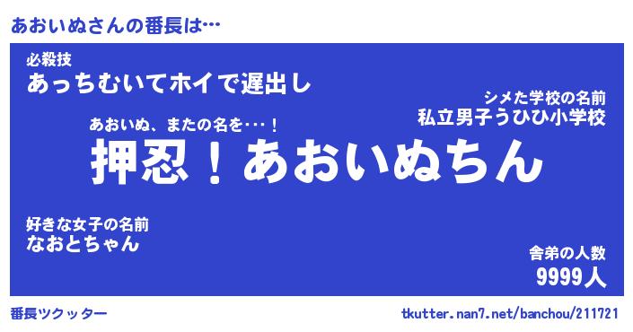 | 伝説のあだ名 | 『封印されしスナイパーあおいぬ』 |