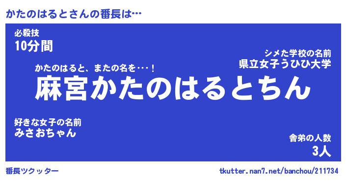 | ヒーロー風カッコイイあだ名 | 『スーパーカタノハルト』『魔戒騎士カタ』 |