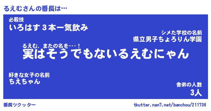 | ファンタジー風あだ名 | 『ルエフェル』『エターナルルエムー』 |