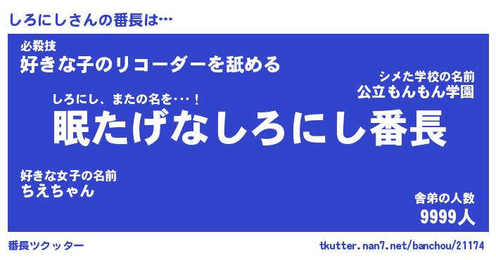 | 伝説のあだ名 | 『封印されしスナイパーしろにし』 |