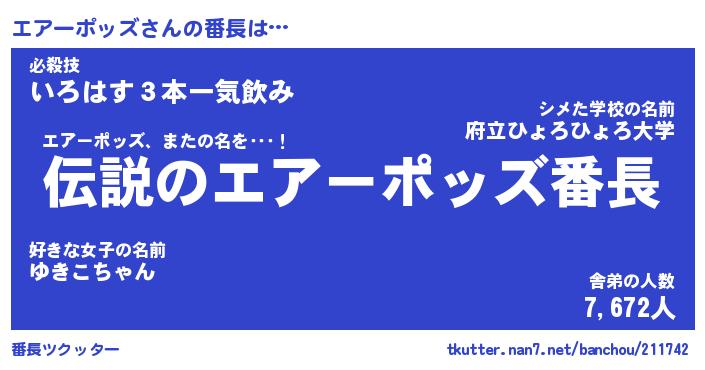 | 肩書あだ名 | 『エアーポッズ店長』『エアーポッズ班長』 |