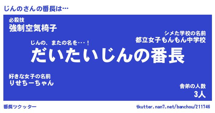 | 2回繰り返すあだ名 | 『じんじん』『じじんん』『なあなあ』 |