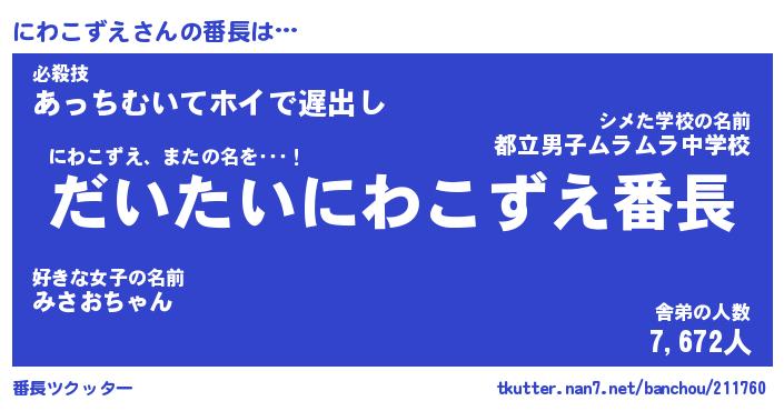| 2回繰り返すあだ名 | 『にわにわ』『ににわわ』『ぬらぬら』 |