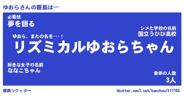 | 意味不明あだ名 | 『ペロリンゆおら』『ゆおらフォーエバー』 |