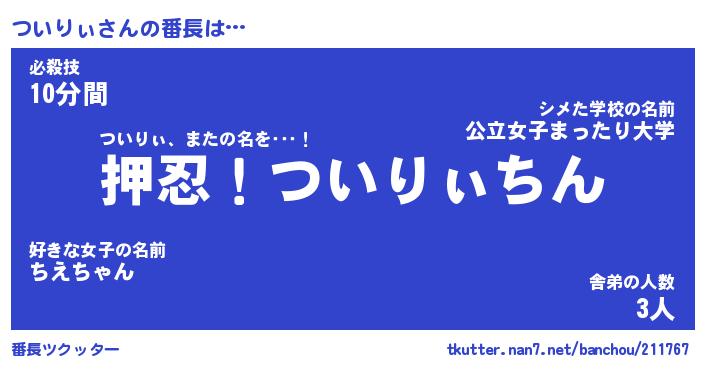 | ファンタジー風あだ名 | 『ツイフェル』『エターナルツイリィー』 |