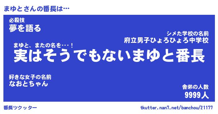 | 伝説のあだ名 | 『封印されしスナイパーまゆと』 |