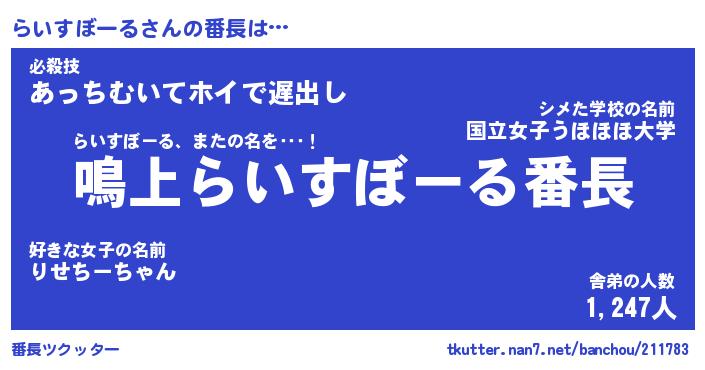 | 肩書あだ名 | 『らいすぼーる御曹司』 |