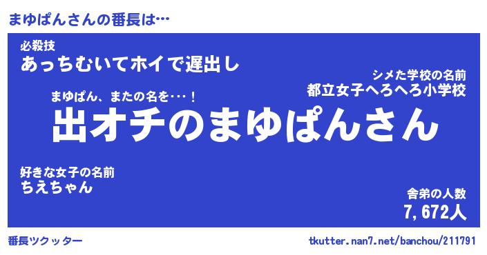 | 2回繰り返すあだ名 | 『まゆまゆ』『ままゆゆ』『ぬれぬれ』 |