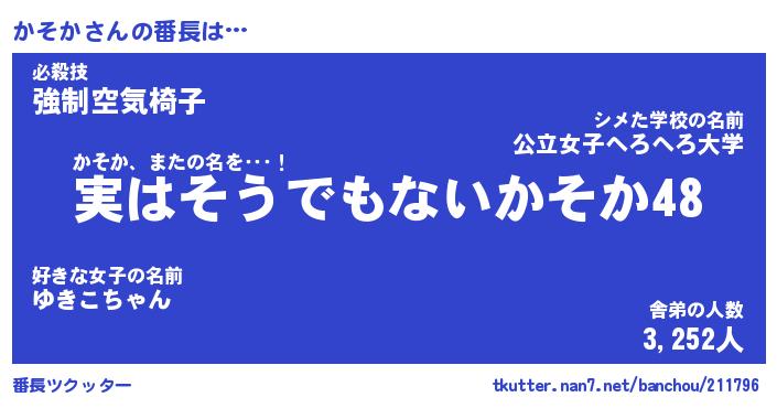| ヘコむあだ名 | 『かそふぇ~』『なまこ酢』『かそを』 |