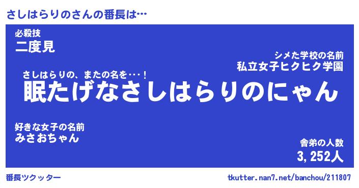 | 2回繰り返すあだ名 | 『さしさし』『ささしし』『ぬぷぬぷ』 |
