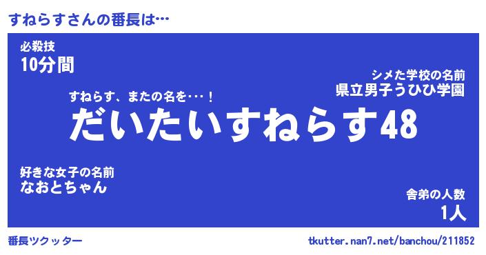 | 意味不明あだ名 | 『ペロリンすねらす』『永久保存すねらす』 |