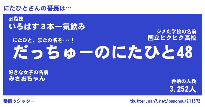 | ファンタジー風あだ名 | 『ニタフェル』『エターナルニタヒトー』 |