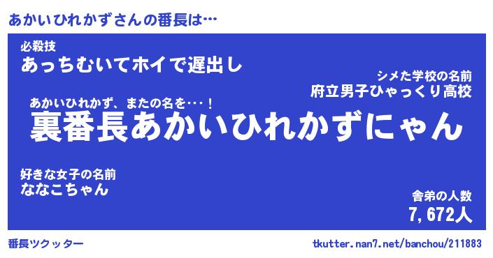 | 伝説のあだ名 | 『不死鳥のスナイパーあかいひれかず』 |