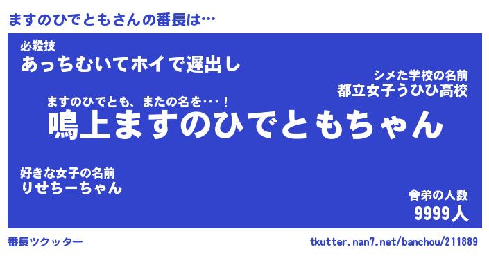 | 伝説のあだ名 | 『封印されしスナイパーますのひでとも』 |