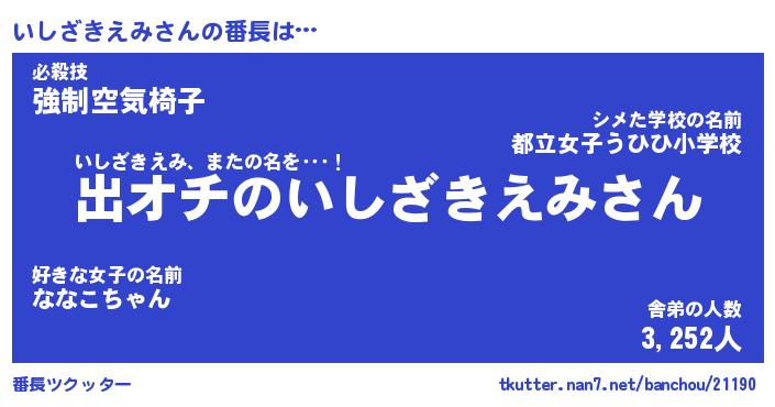 | ヒーロー風カッコイイあだ名 | 『スーパーイシザキエミ』『黄金騎士イシ』 |