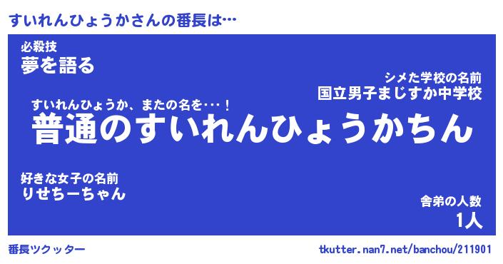 | ピコ太郎風あだ名 | 『スコ四郎』『ピス二郎』『スイ史郎』 |