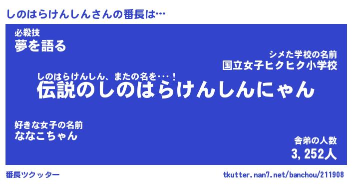 | ヒーロー風カッコイイあだ名 | 『スーパーシノハラケンシン』 |