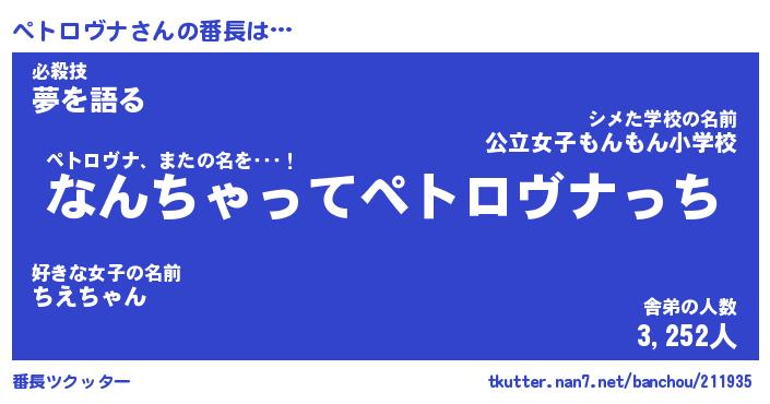 | ファンタジー風あだ名 | 『ペトフェル』『エターナルペトロヴナー』 |