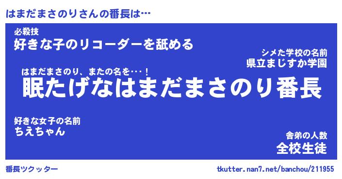 | ヘコむあだ名 | 『はまにゅー』『なまこ酢』 |