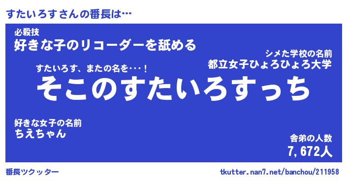 | ピコ太郎風あだ名 | 『スコ五郎』『ピス一郎』『スタ六郎』 |