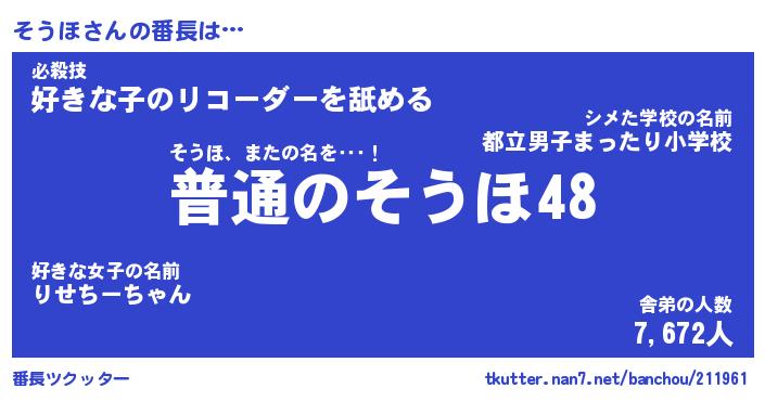 | 意味不明あだ名 | 『ペロリンそうほ』『そうほフォーエバー』 |