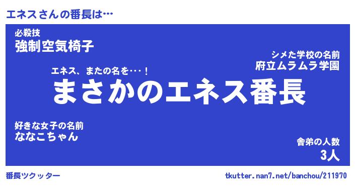 | ヒーロー風カッコイイあだ名 | 『スーパーエネス』『ウルトラエネスマン』 |