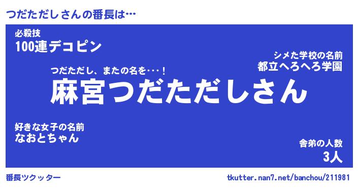 | 肩書あだ名 | 『つだただし社長』『つだただし総理大臣』 |