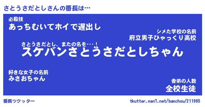 | 伝説のあだ名 | 『不死鳥の竜騎士さとうさだとし』 |