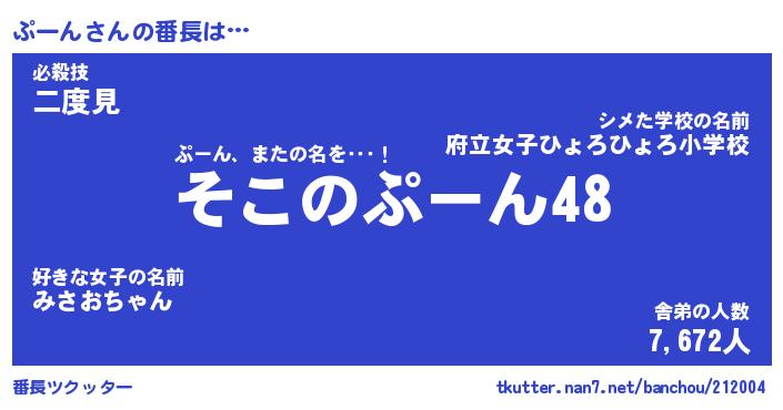 | ヘコむあだ名 | 『ぷーもー』『酢こんぶ』『ぷーを』 |