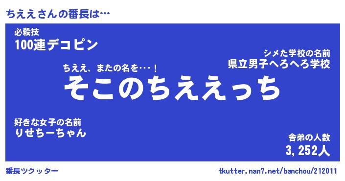| 意味不明あだ名 | 『ペロリンちええ』『ちええフォーエバー』 |