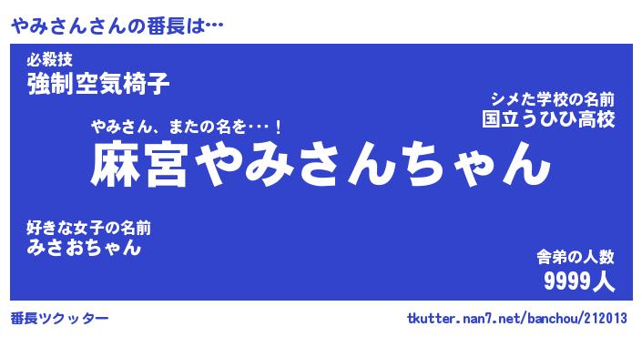 | ヒーロー風カッコイイあだ名 | 『スーパーヤミサン』『天弓騎士ヤミ』 |