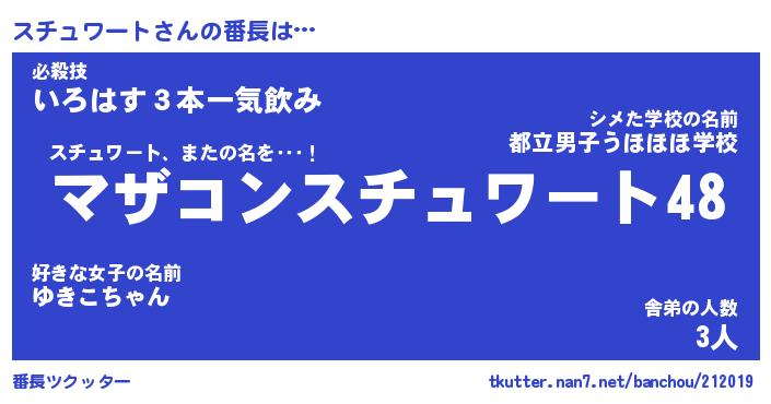 | ヒーロー風カッコイイあだ名 | 『スーパースチュワート』『黄金騎士スチ』 |