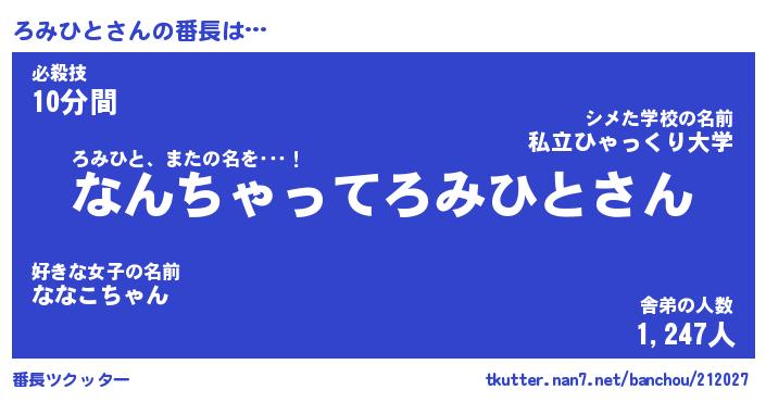 | 肩書あだ名 | 『ろみひと社長』『ろみひと国家主席』 |