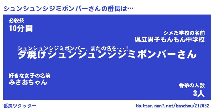 | ヒーロー風カッコイイあだ名 | 『スーパーシュンシュンシジミボンバー』 |