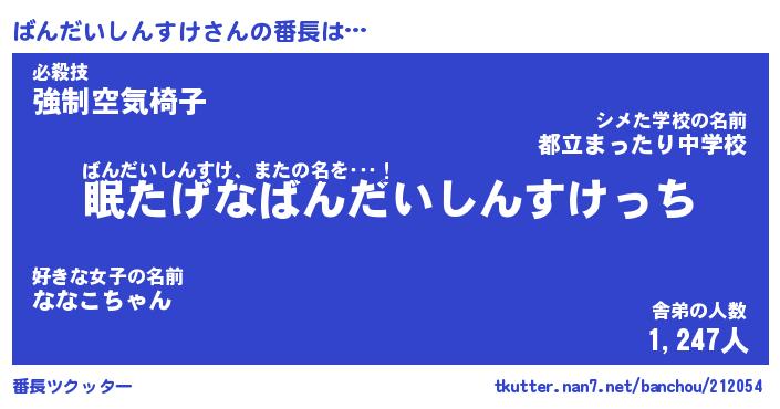 | 意味不明あだ名 | 『ペロリンばんだいしんすけ』 |