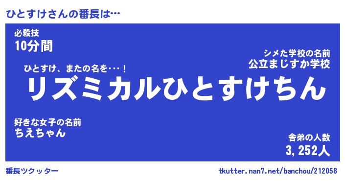 | ヒーロー風カッコイイあだ名 | 『スーパーヒトスケ』『幻影騎士ヒト』 |