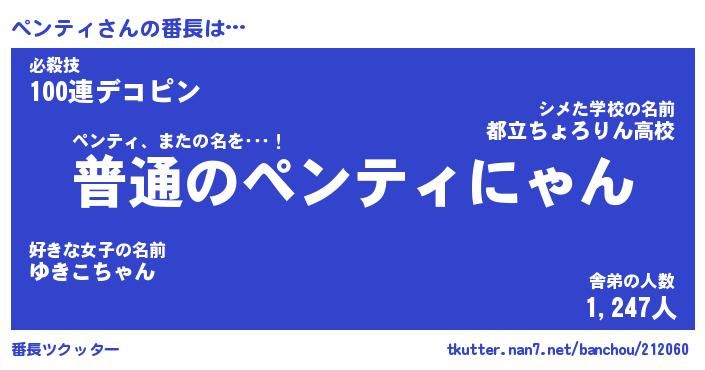 | ポケモン風あだ名 | 『ペンチュウ』『ペンテダネ』 |