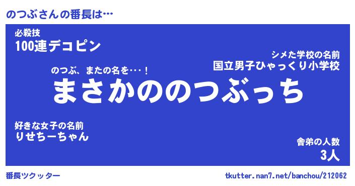 | ヒーロー風カッコイイあだ名 | 『スーパーノツブ』『ウルトラのつぶマン』 |