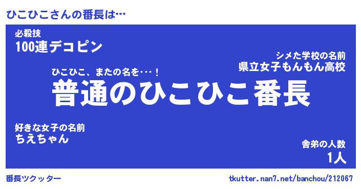 | ヒーロー風カッコイイあだ名 | 『スーパーヒコヒコ』『黄金騎士ヒコ』 |