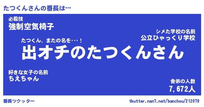| 伝説のあだ名 | 『伝説のスナイパーたつくん』 |