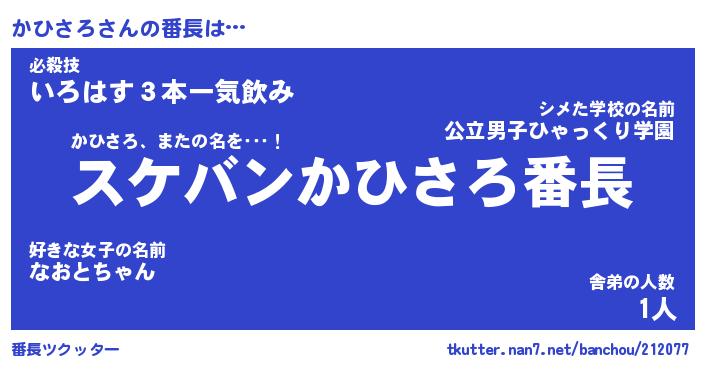| 意味不明あだ名 | 『ペロリンかひさろ』『永久保存かひさろ』 |
