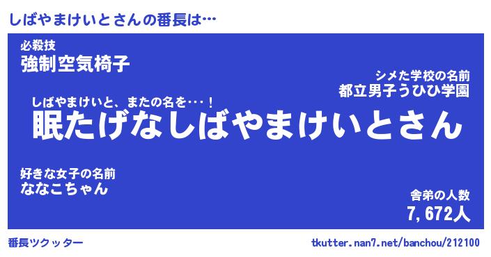 | ヒーロー風カッコイイあだ名 | 『スーパーシバヤマケイト』 |